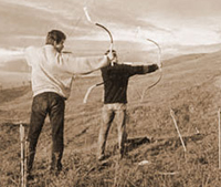 Das Camp findet in etwa einstündiger (Fußmarsch-)Entfernung zu einem Bogenparcours statt, am Samstag werden wir mit einer Koloone Lamas, sowie Bögen und Pfeilen im Gepäck eine Wanderung dorthin unternehmen. Allein die Wanderung mit den sanften Packtieren, die von den Teilnehmern selbst am Halfter geführt werden und unser Gepäck tragen, ist ein Erlebnis für sich. Am Parcours findet eine Einweisung in die Materie statt und dann geht es zum Rundgang über ein tolles Gelände - "Jagdfeeling" inklusive. Für Klein und Groß ein schönes Abenteuer.
