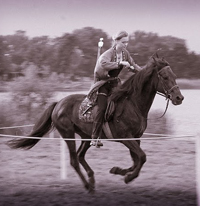 Anforderungen an Pferd und Reiter: Immer wieder taucht die Frage auf, welcher Pferderasse Pferde für das berittene Bogenschießen am besten angehören oder welche Pferde gar nicht geeignet sind. Prinzipiell lässt sich sagen, dass fast jedes Pferd gemeinsam mit seinem Reiter erlernen kann, dass die Handhabung von Pfeil und Bogen auf seinem Rücken nichts ist, was Angst einjagen muss. Die Gewöhnung läuft - richtiges Herangehen vorausgesetzt - in der Regel völlig problemlos im Rahmen des Kurses ab. Von großem Vorteil ist natürlich ein vertrauensvolles Miteinander von Pferd & Reiter. Pferde, die gelernt haben, dass ein Gegenstand in der Hand eines Reiters Gefahr oder Schmerz bedeutet, sind daher weniger geeignet und müssen langsam an das Bogenschießen herangeführt werden. Ansonsten sind alle Rassen geeignet, je nach Galoppierfreudigkeit und Geschwindigkeit des eigenen Pferdes wird der Reiter unterschiedliche "Strategien" beim Einsatz seines Bogens fahren: Der auf dem schnellen Pferd setzt auf gute Zeiten und gezielte wenige Schüsse, wer eher gemütlich im Galopp unterwegs ist, "verschenkt" Zeitpunkte und kann dafür mehr Pfeile in der zur Verfügung stehenden Zeit schießen. Egal wie: Das Wichtigste an diesem Sport ist, dass beide, Pferd und Reiter, Spaß an der Sache haben.